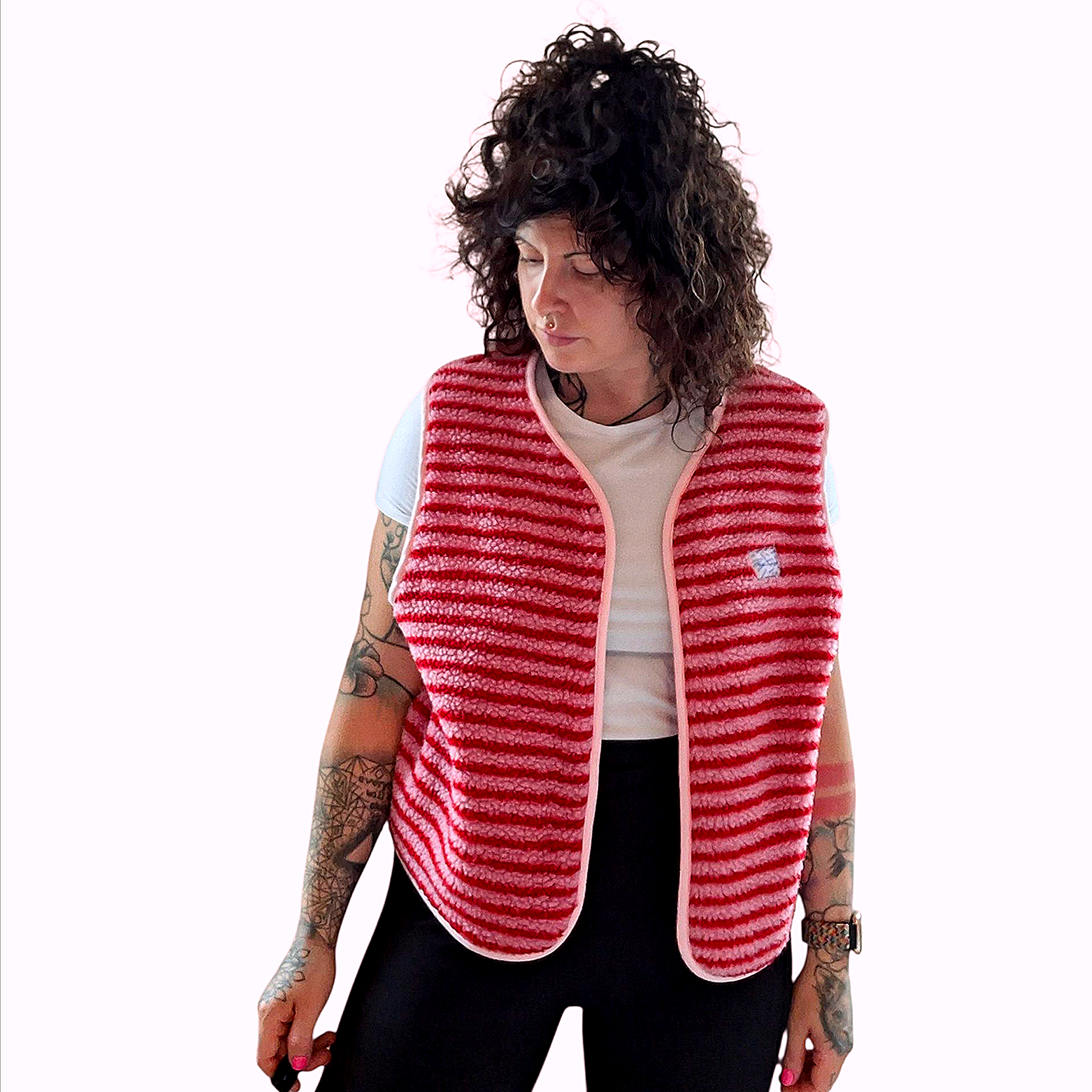Die Weste ist mit Herz & Liebe handgenäht, in Kleinserie vom Berliner Label Frau_Tonktonk.