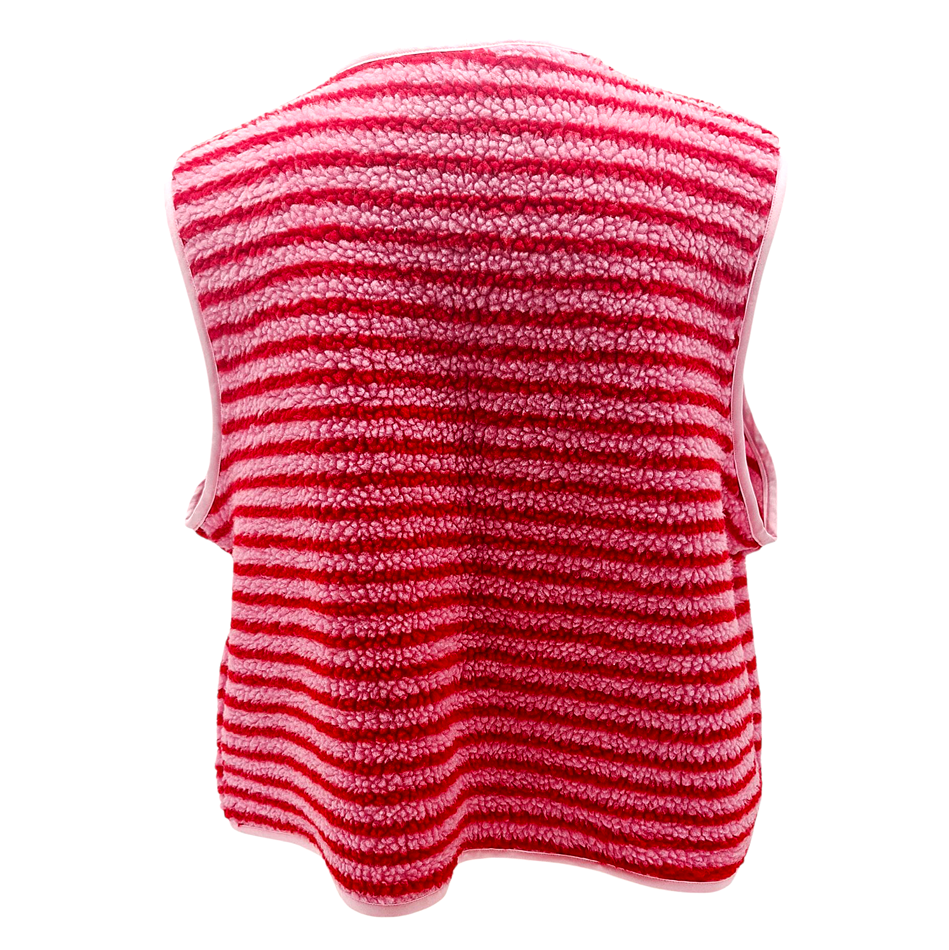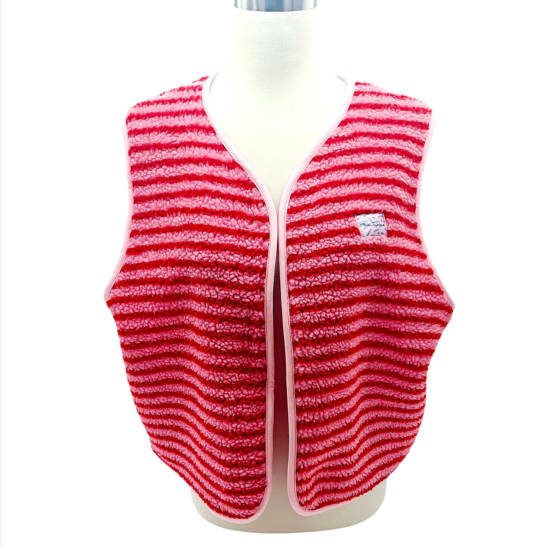 Die Weste besteht aus Teddyplüsch (100 % Polyester), hat KEIN Innenfutter & KEINE Knöpfe/Reißverschluss zum Schließen der Weste.